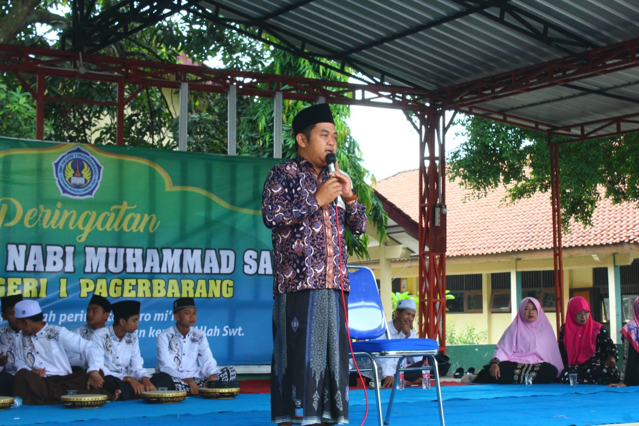 Dalam peringatan ini, Ustadz KH. M. Aqib Malik atau biasa dipanggil Gus Aqib memberikan taushiyahnya agar siswa-siswi SMPN 1 Pagerbarang tetap menjaga Sholat Lima Waktu sebagai oleh-oleh Rosulullah SAW dalam perjalanan Isro’ Mi’roj. Amal pertama yang dinilai dari seorang hamba di hari qiyamat adalah sholatnya. Seorang yang masih bolong-bolong sholatnya ibarat membawa belanjaan dengan keranjang yang bolong-bolong sehingga bawaannya akan jatuh semuanya. Demikian juga orang yang masih belum lengkap sholatnya maka amalan lainnya akan berjatuhan. Oleh karena itulah, mari kita jaga sholat kita dan lebih bagus lagi apabila kita lakukan dengan berjamaah karena pahalanya dua puluh derajat lebih dibanding sholat sendirian. Dikisahkan juga ada sahabat Nabi yang tidak pernah meninggalkan sholat berjamaahnya.